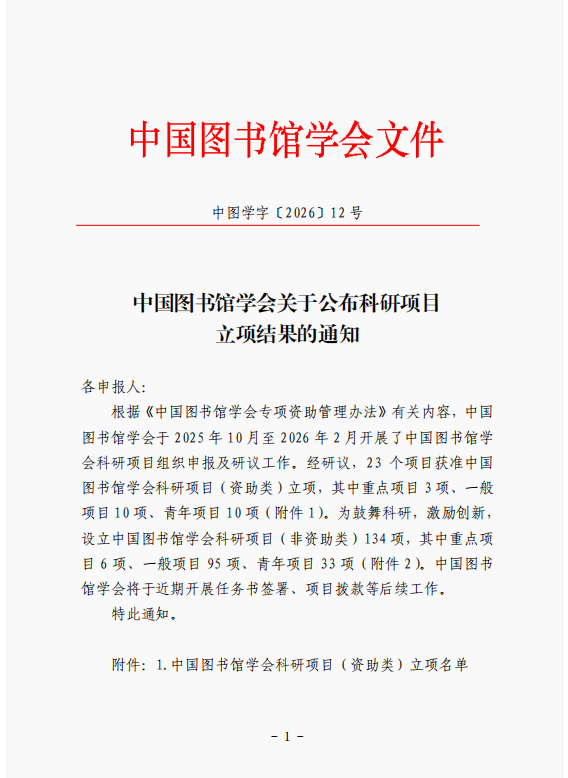 我馆卜凡同志课题获中国图书馆学会 科研项目(非资助类)青年项目立项