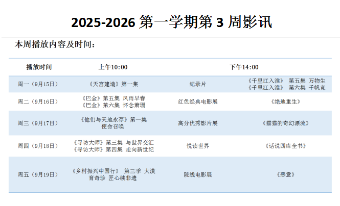 2025-2026 第一学期第3周影讯