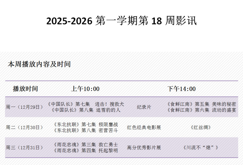 2025-2026第一学期第18周影讯