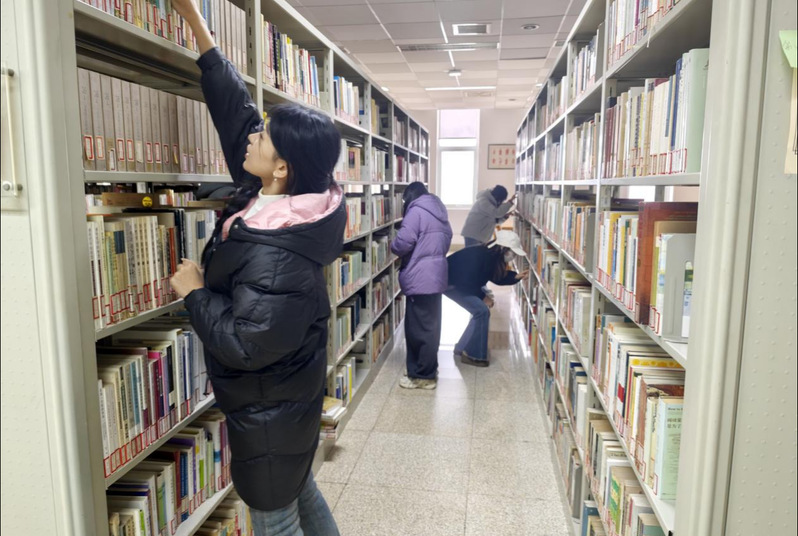 本次活动紧扣学雷锋纪念日契机,创新采用“理论学习+实践服务”双轨并行模式,通过集中观看雷锋同志纪录片、师生携手开展图书整架志愿服务等具体举措,让全体参与人员沉浸式感悟雷锋同志爱岗敬业、无私奉献、助人为乐的崇高品格,接受了一次深刻的思想淬炼和精神洗礼。观影结束后,党员同志带头示范、师生协同联动,分工明确、默契配合,有序开展书架整理、图书归位、书序调整等志愿服务,现场氛围浓厚、秩序井然。大家以躬身实践传承雷锋精神,用实际行动践行初心使命,充分展现了图书馆党员昂扬向上、乐于奉献的良好精神风貌。