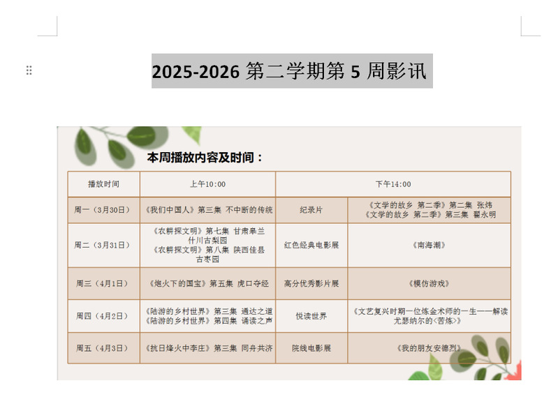 2025-2026第二学期第5周影讯