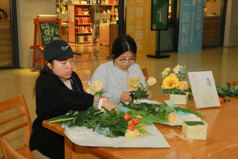 本次活动包括主题书展、漆扇绘制、宋锦挂件制作、中国传统插花、书香拼贴创作、读书沙龙,以“读非遗之书、悟匠心之韵、践美育之行”为主线,将全民阅读与非遗传承深度融合。主题图书推荐书展精选漆艺、宋锦技艺等非遗类与中国传统插花书籍,为师生搭建了解非遗历史、解读匠心的知识桥梁。通过漆扇绘制、宋锦挂件制作、传统插花等手作体验活动,将阅读从“纸上”延伸到“手上”,在师生亲手操作中,把书中知识转化为具象作品,既深化了阅读感悟,又在创作中提升审美素养,在打磨中涵养精益求精的匠心,实现“阅读润心、手作践美、匠心铸魂”的统一。特邀程志理教授开展读书沙龙,围绕《游戏与人》进行多学科解读,引导师生从多元视角探讨阅读与成长、文化与生活的关联。活动现场气氛热烈,全校师生齐聚一堂,或驻足书展品读非遗经典,或投身手作体验传承传统技艺,或参与沙龙交流思想感悟,在墨香与匠心的交融中,共赴一场兼具美育价值与文化温度的心灵之约。