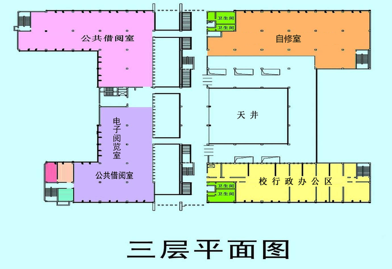 城南图书馆布局之三层平面图